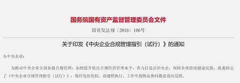 國資委印發《中央企業合規管理指引(試行)》