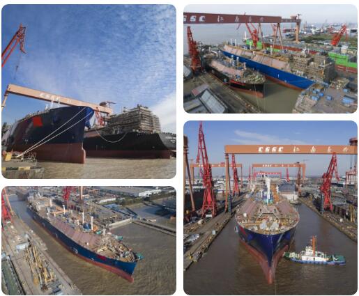 11月23日,滬東中華2號船塢內一艘174000立方米LNG船、一艘79960立方米LNG船、半艘174000立方米LNG船實現3船起浮、2船出塢,這也是滬東中華歷史上首次實現2艘LNG整船同塢同日下水。