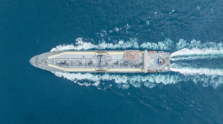 “崆峒”號由滬東中華自主研發(fā)設(shè)計,總長295米,航速19.5節(jié),采用全球最新一代雙燃料低速推進動力系統(tǒng),配備先進環(huán)保裝置,可靠泊全球絕大多數(shù)陸地岸站。